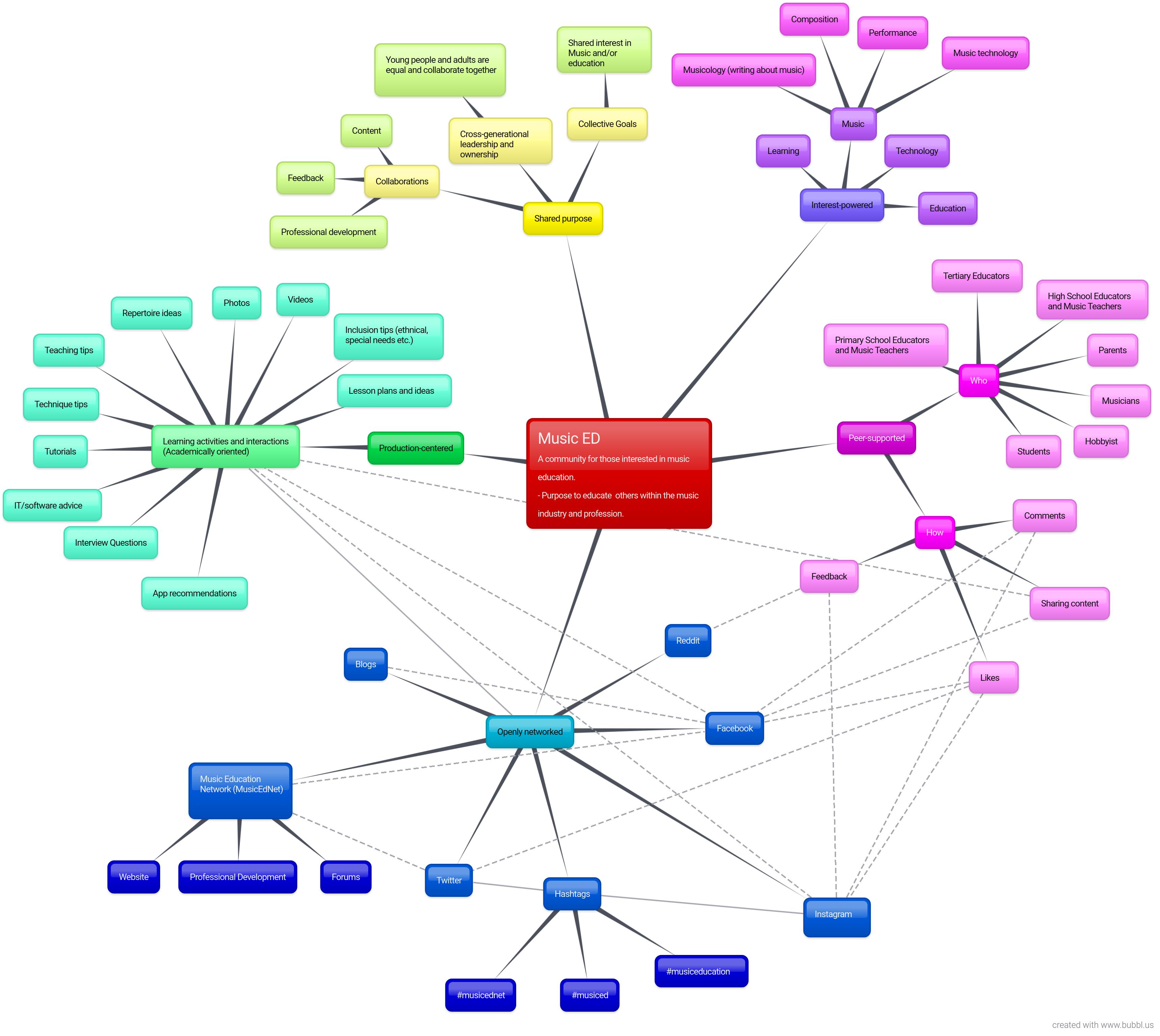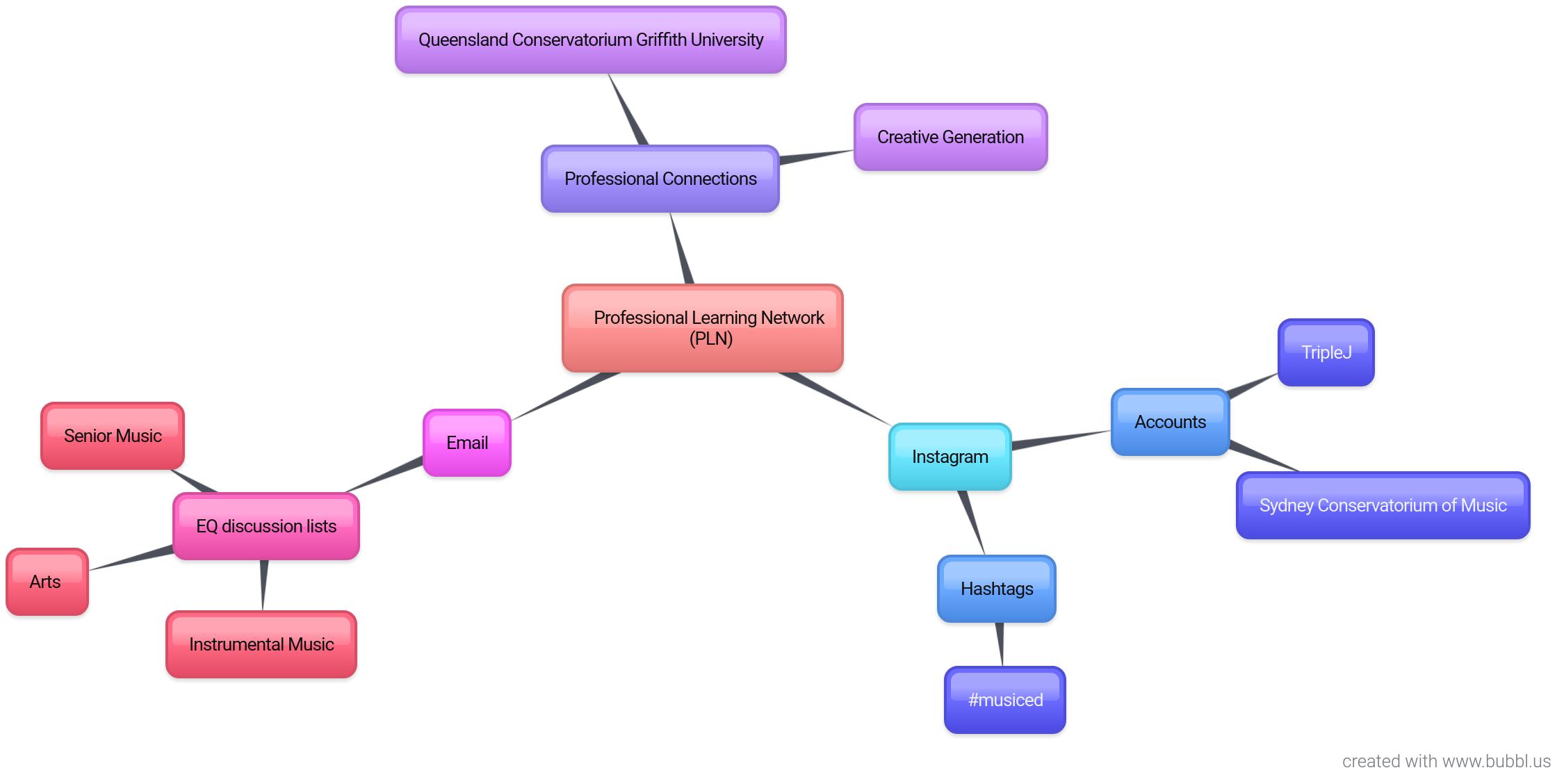 Developing my PLN has allowed for growth and development in many areas. Personally, I have been able to grow my professional learning connections and resources. I have also been able to refine the skills and ability to share valuable content with others. All of this while connecting with professionals and/or teachers I would not normally be connected with throughout the school year. My PLN will continue to grow, develop and change over time. There are always changes with teaching and staying across these is important to me. Wanting to be the best teacher I can will always shape my PLN with smaller foci taking the priority occasionally. The many interests of classroom, music technology and instrumental teaching are all included within my future PLN. The final PLN map can be found here.