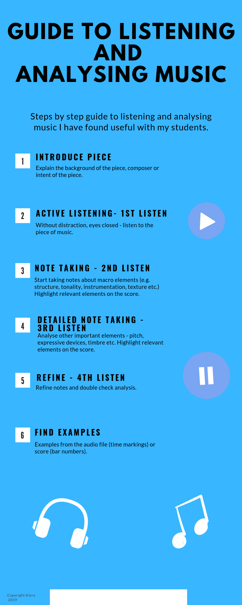 It was reflected upon as to why the artefacts that were presented had limited interactions from my PLN. The first infographic was intended to help others who are teaching aural and visual music analysis. I have tried this model within my classes, and it has proved to work, increase engagement and build their subject knowledge. The students have made the process a habit now. There was a great number of impressions for this post but only one like – the break down of the activity can be seen below. Through the Twitter hashtags used in the posts, I was able to reach a bigger audience, both within Australia and potentially internationally.